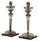 in argento, fusto a colonna scanalata, basi quadrate appesantite, alt. cm 28, lievi danni (2)