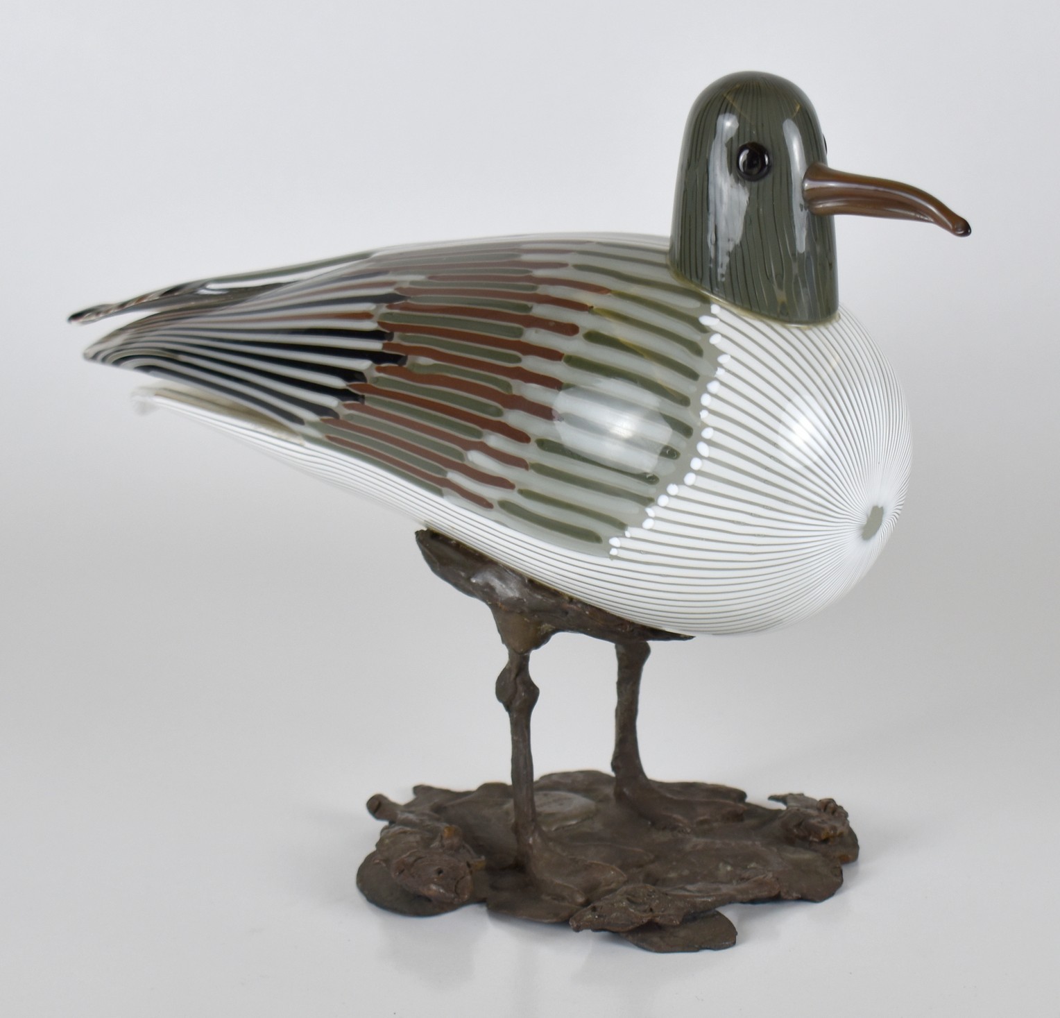 scultura in vetro a canne policrome su basamento in bronzo patinato