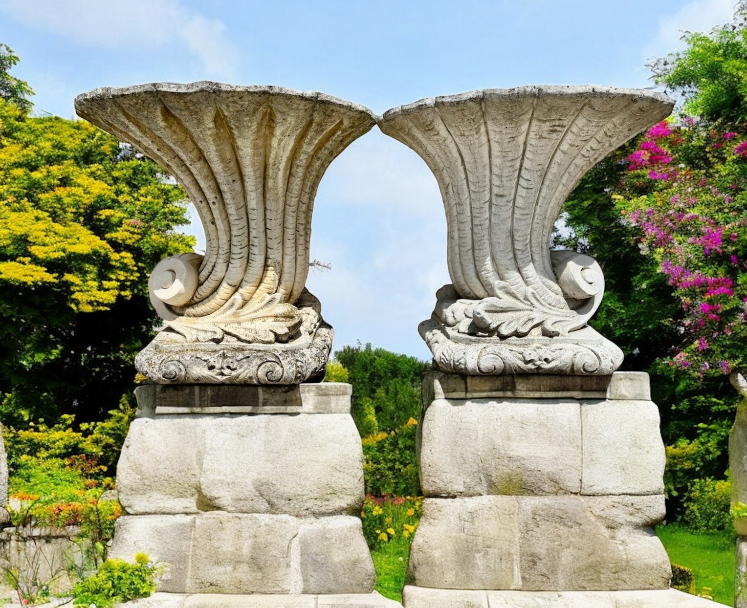 Coppia di cornucopie in pietra ricostruita