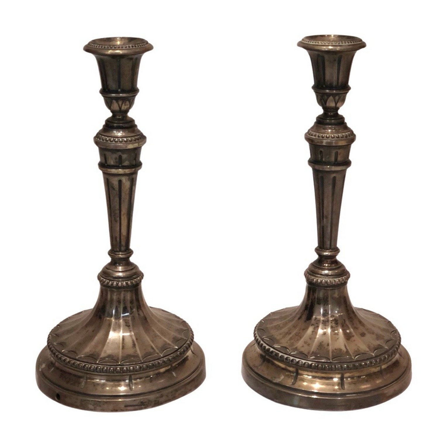 Coppia di candelieri in argento stile Luigi XVI sec.XIX (Roma)