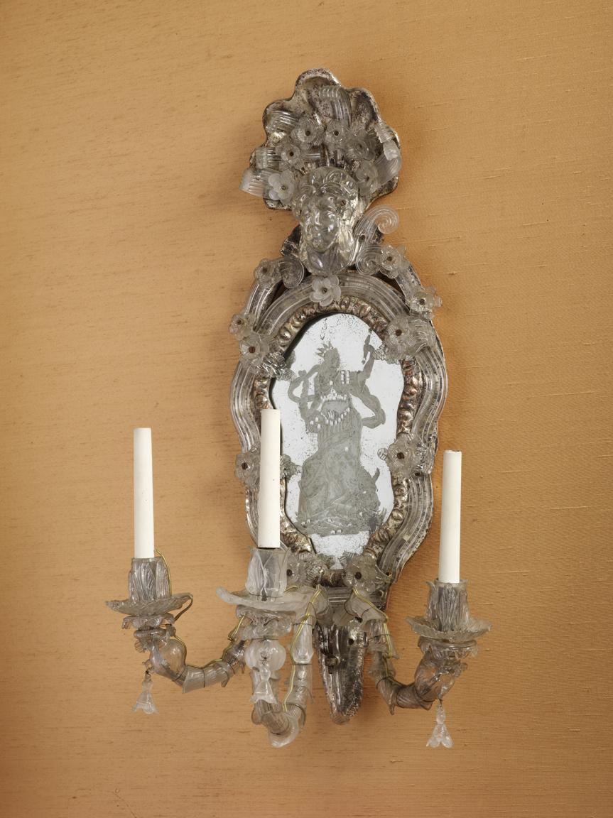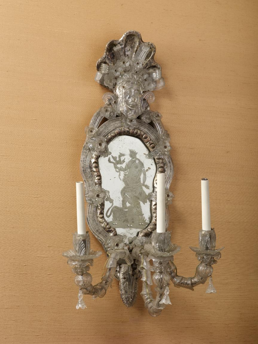 COPPIA DI VENTOLE, MURANO, SECOLO XIXin vetro a tre luci, cornice sagomata...