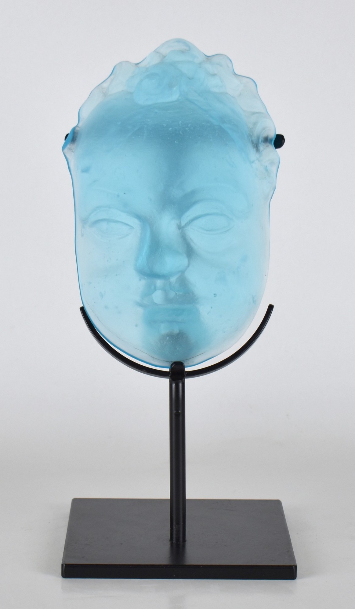 Murano volto in vetro blu poggiante su base in marmo