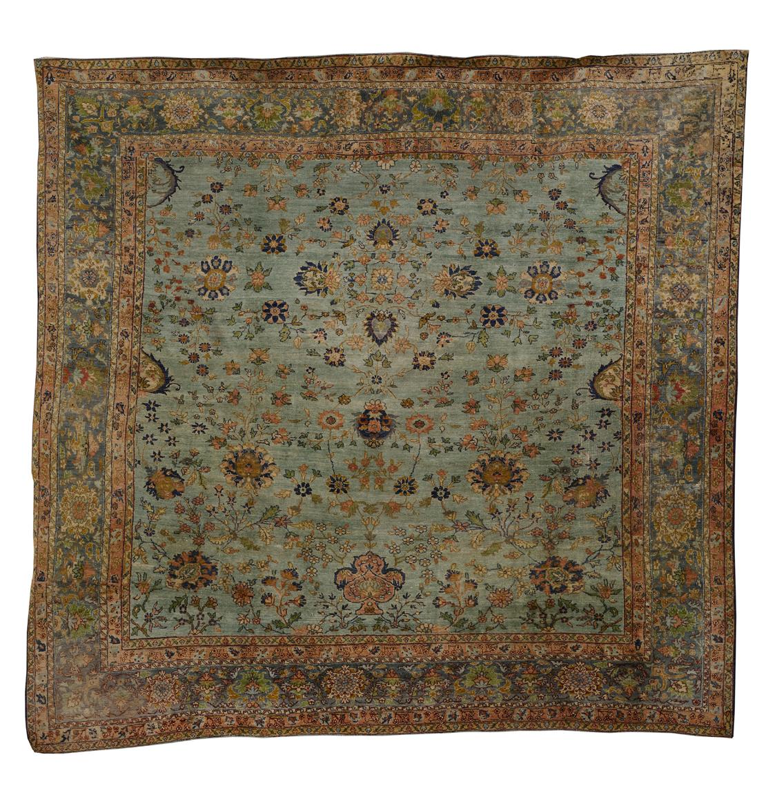 TAPPETO MAHAL, INIZI SECOLO XXfondo celeste con decoro a fiori nei toni del...