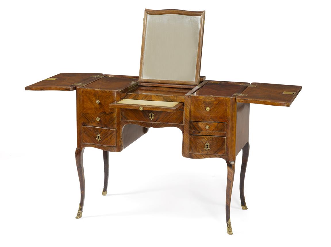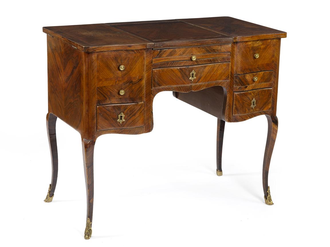 TOILETTE, PIEMONTE, SECOLO XVIIIin palissandro, piano sagomato con sportello...