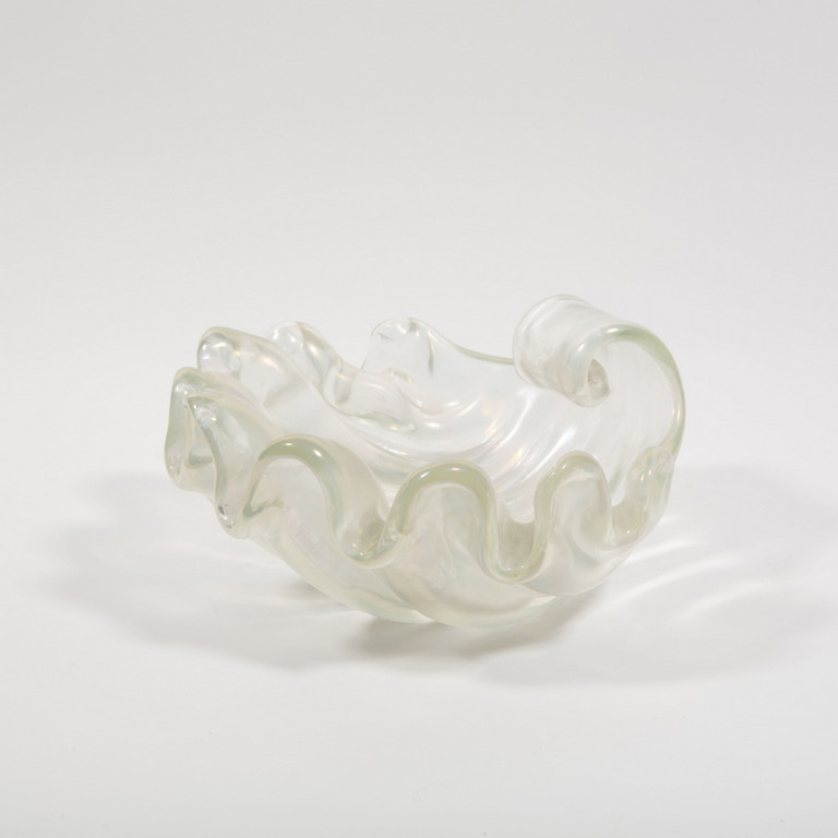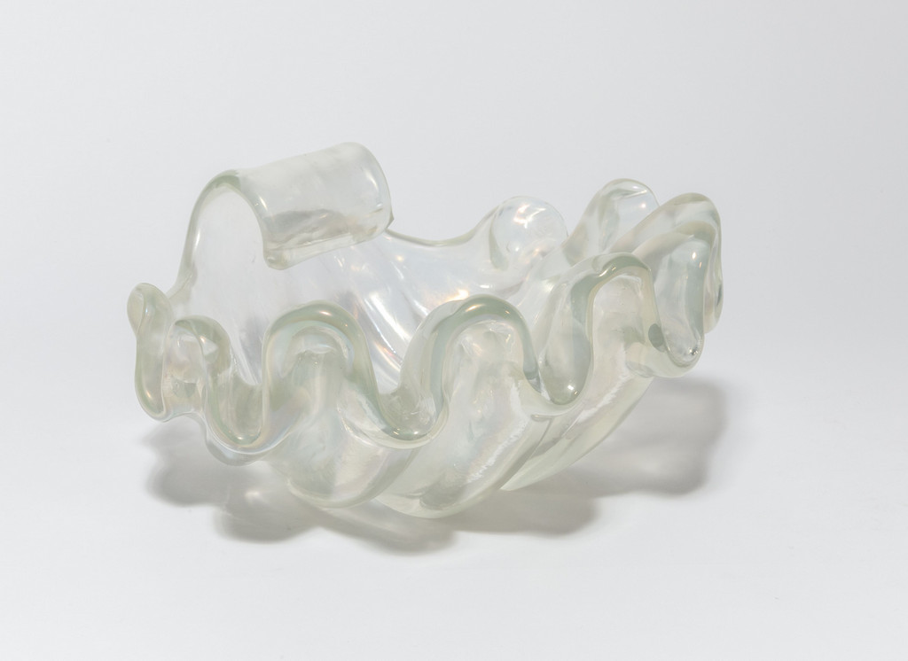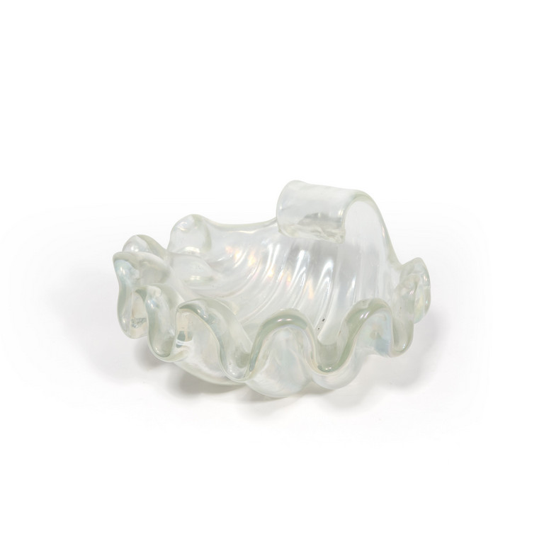 Una coppa a conchiglia con ricciolo trasparente iridato.