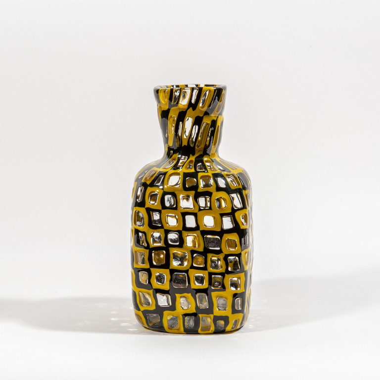 Un vaso 'occhi' a murrine gialle e nere con nucleo