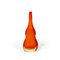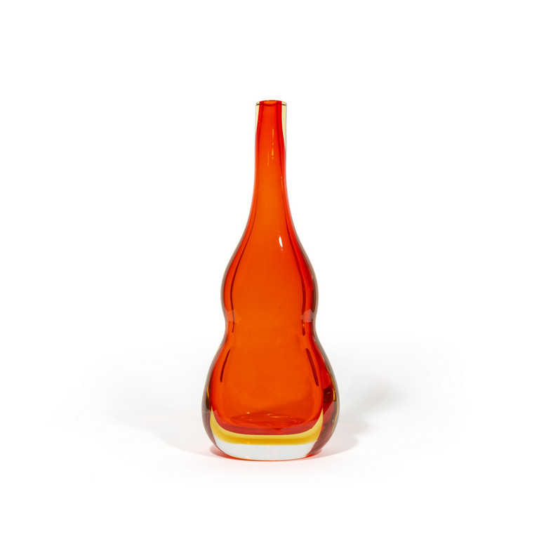 Un vaso a sezione schiacciata a doppia bombatura in vetro sommerso arancio e giallo.