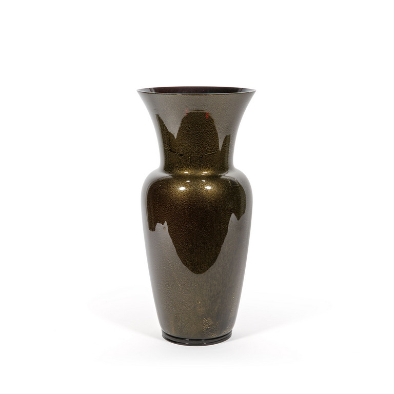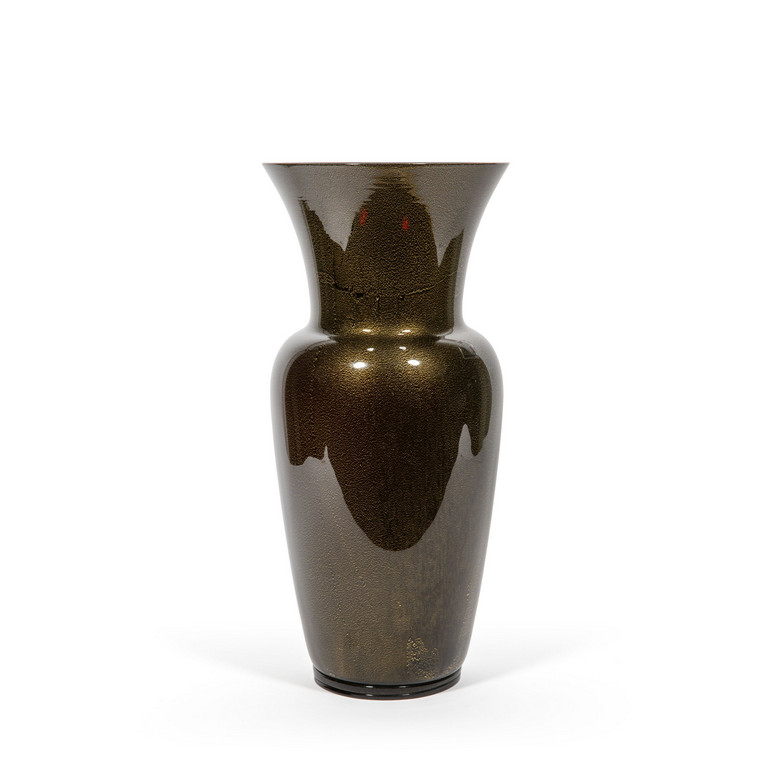 Un vaso 'opalino' nero decorato con foglia oro.