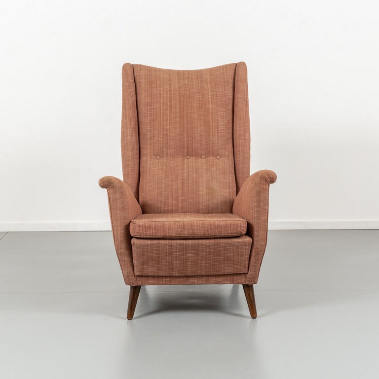 Struttura e gambe in legno parti imbottite rivestite in tessuto.