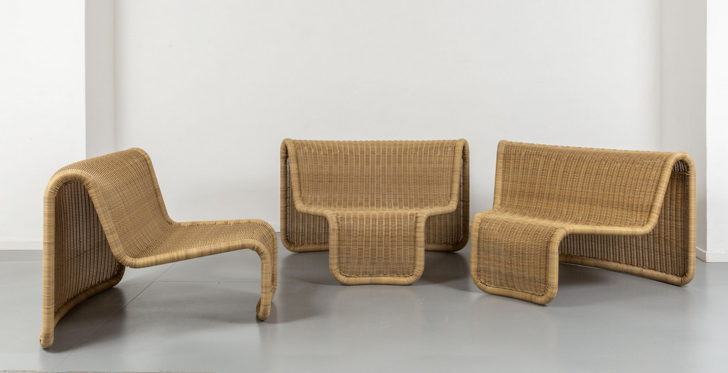 Steel structures 'Polycore Carbon' synthetic wicker coverings.
