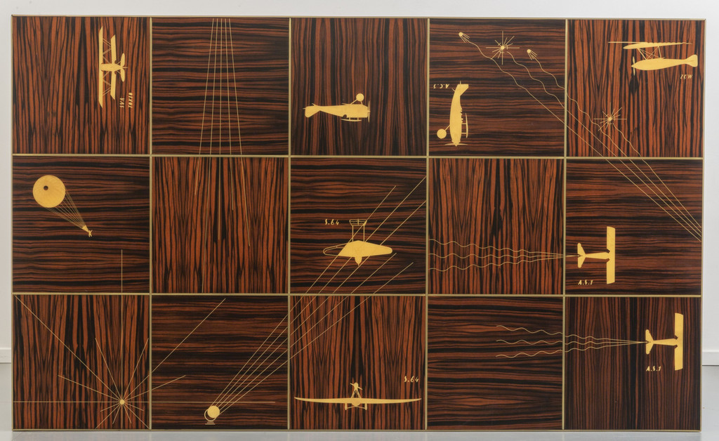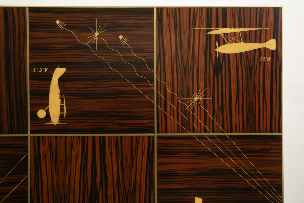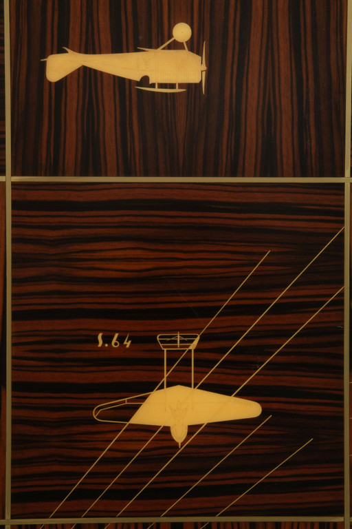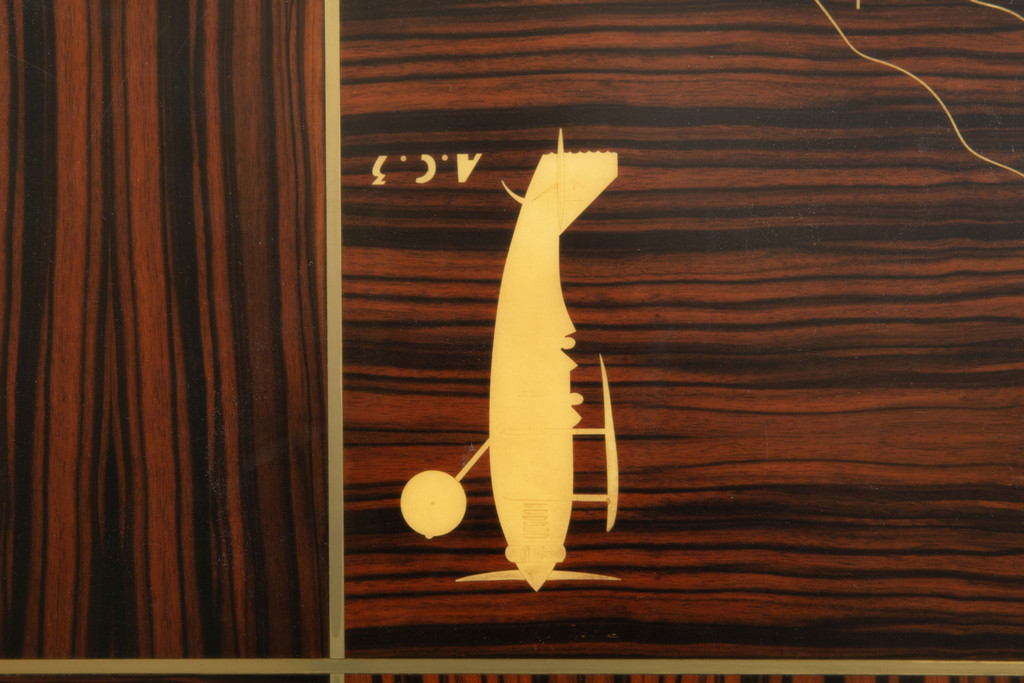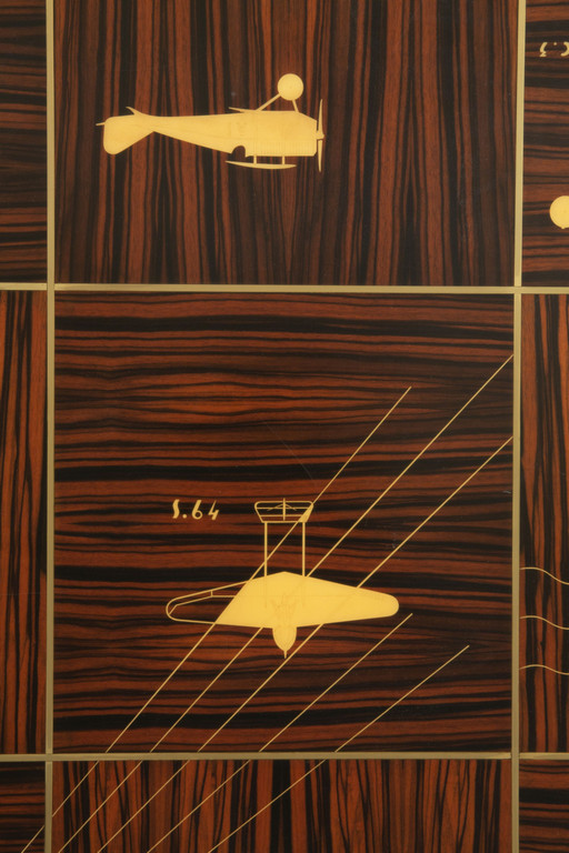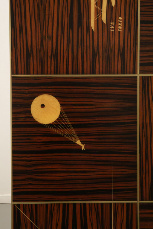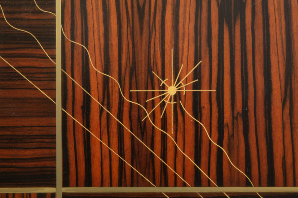 Legno di Ebano Macassar profili in acciaio e avoriolina intarsi in pergamena.