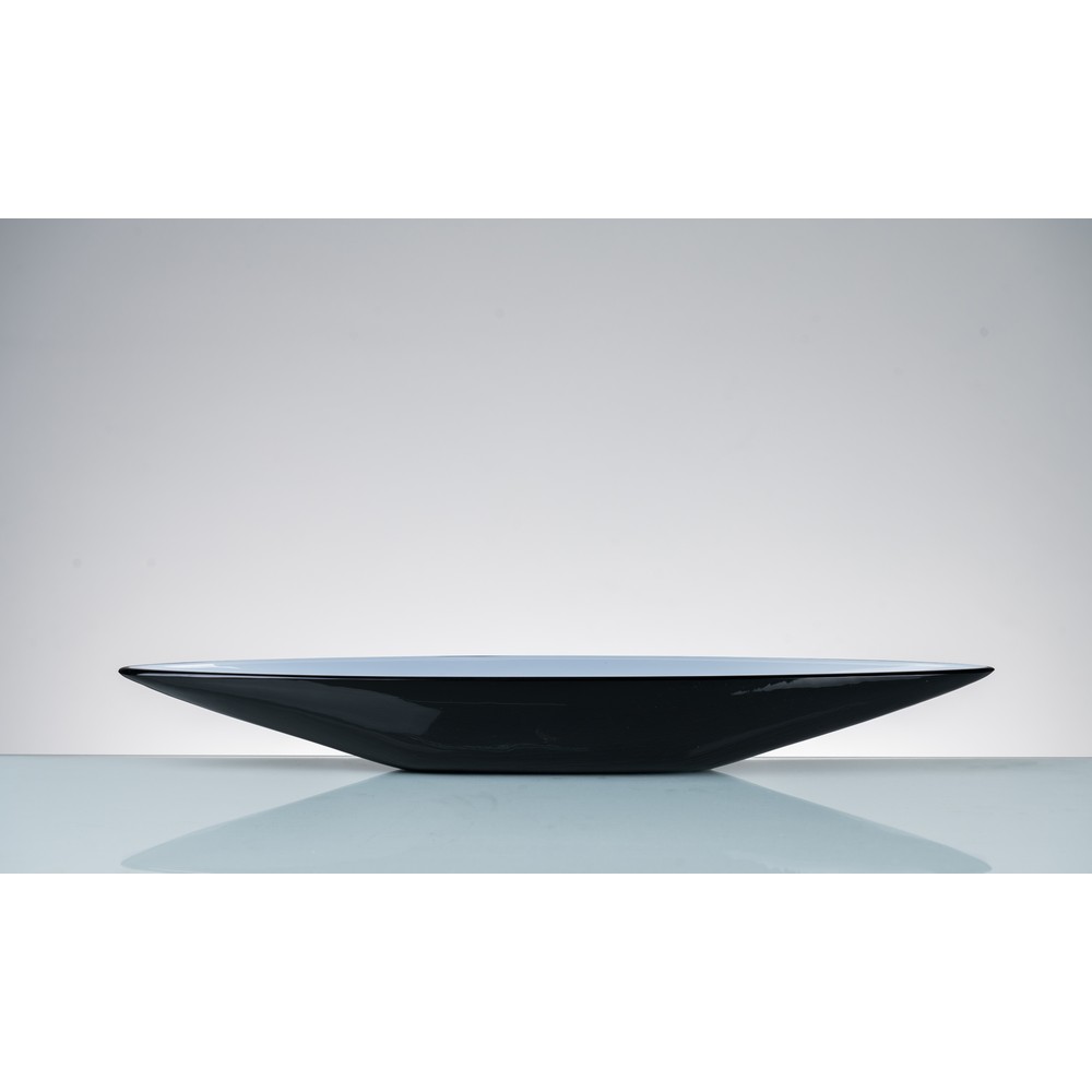 Centrotavola in vetro incamiciato nero e bianco, corpo a gondola.
