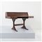 Scrivania modello “530” in legno esotico massello, impiallacciato e bordato, due cassetti sul fronte con alzata portadocumenti a serranda .