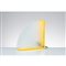 Lampada da tavolo ad una luce, struttura in metallo verniciato giallo, diffusore in vetro satinato. Usure e mancanza alla vernice.