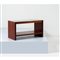 Tavolo da salotto in legno di noce, piano rettangolare con vetro incassato, sotto piano in legno. Segni di uso.