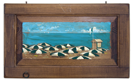 MASSIMO LOMI Livorno 1953 Estate 2014 Tempera su tavola 39,5 x 66 con pomello...