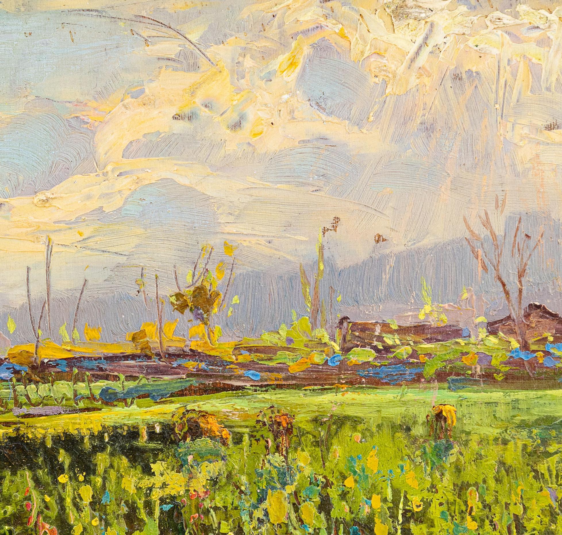 - Alfredo Beisone è stato un pittore italiano del Novecento, la cui vita e carriera riflettono un profondo legame tra arte e territorio. Nato a Pinerolo il 17 ottobre 1882 e scomparso a Torino il 12 gennaio 1957, fin da giovane scelse la pittura, abbandonando gli studi di Farmacia per dedicarsi alla sua vera passione. Durante la sua formazione incontrò Lorenzo Delleani e divenne allievo del maestro Andrea Tavernier, esperienza che lo avvicinò al divisionismo e lo portò a esplorare nuovi linguaggi espressivi.Il suo esordio avvenne nel 1913, con l’opera "Armonie invernali" presentata alla Società Promotrice di Torino, segnando l’inizio di una carriera costellata da numerose esposizioni in città come Torino, Genova e Roma. Tra le tappe fondamentali della sua attività espositiva si annoverano la Quadriennale di Torino e la Mostra Nazionale di Trieste, con la sua prima mostra personale a Pinerolo nel 1932 che vide l’esposizione di 41 opere.Oltre alla carriera artistica, Beisone si distinse anche per il suo impegno civile. Durante la Prima Guerra Mondiale si arruolò come volontario alpino, distinguendosi per il coraggio dimostrato e ricevendo medaglie al valore militare. Negli anni Trenta, oltre a portare avanti la sua attività pittorica, assunse un ruolo attivo nella vita pubblica del Comune di Pinerolo, venendo insignito della Croce di Cavaliere della Corona nel 1931.Artisticamente, Beisone si distinse come un autentico paesaggista. Le sue opere, spesso realizzate all’aperto, catturano con delicatezza e intensità la bellezza della natura: dalle case e i campanili dei piccoli borghi alle ampie distese di colline, montagne e prati illuminate dalla luce del sole. Con un linguaggio pittorico personale, il pittore ha saputo trasmettere emozioni e sensazioni, creando immagini che rimangono impresse nella memoria di chi le osserva.La storia di Alfredo Beisone testimonia il percorso di un artista che ha saputo unire tecnica, passione e impegno civile, lasciando un’eredità preziosa che continua a illuminare il panorama dell’arte italiana.