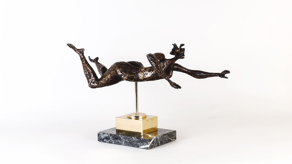 LUCIANO MINGUZZI (1911-2004) La nuotatrice scultura in bronzo, es 49/195, firmata, su base in marmo esclusa la base h cm 15x49x17 Corredata di certificato di autenticità San Zanobi SWIMMER, BRONZE, WITH SAN ZANOBI CERTIFICATE OF AUTHENTICITY