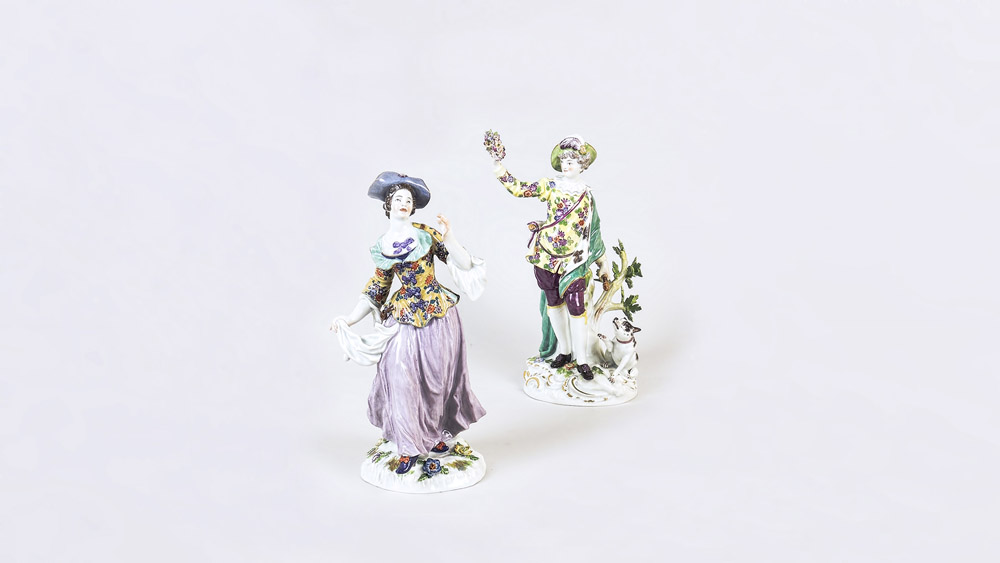 COPPIA DI FIGURE IN PORCELLANA Meissen, inizio del XX secolo raffiguranti due...