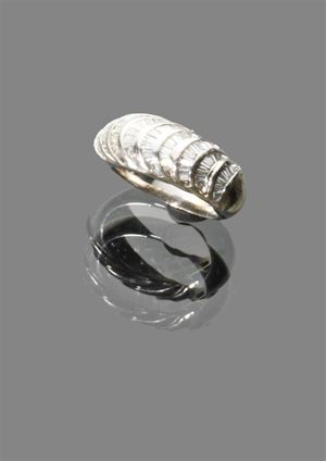 ANELLO Anello in oro bianco con diamanti taglio trapezio per complessivi ct 1,10 ca peso gr 15,70 White gold ring with trapezoid cut diamonds totaling about 1.10 ct weight of 15.70 grams