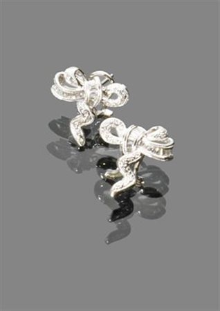 COPPIA DI ORECCHINI coppia orecchini in oro bianco con diamanti taglio 8/8 e trapezi per complessivi ct 0,70 ca peso gr 6,30 white gold earrigns with 8/8 and trapezoid cut diamonds approx total 0,70 kt weight 6,30 gr
