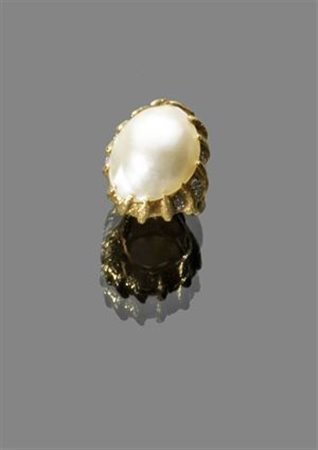 ANELLO Anello in oro giallo a titolo 14 kt con perla mabé con diamanti taglio 8/8 peso gr 18,50 Ring in 14 kt yellow gold with Mabe pearl and 8/8 cut diamond 18.50 g weight