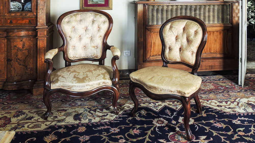COPPIA DI POLTRONCINE E COPPIA DI SEDIE IN NOCE seconda metà del XIX secolo...