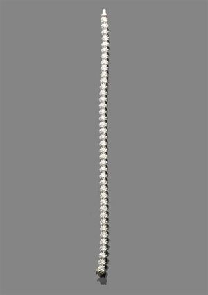 BRACCIALE Bracciale tennis in oro bianco composto da 40 diamanti taglio brill per complessivi ct. 7 circa colore G/H purezza IF/WWS peso gr. 18,60 white gold tennis bracelet with 40 brillant cut diamonds approx total 7 kt color G/H clarity IF/WWS weight 18,60 gr