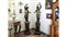 COPPIA DI MORIIN LEGNO LACCATO E IN PARTE DORATO Veneto, fine del XIX/inizio del XX secolo ciascuno con vesti drappeggiate e braccio levato a sorreggere una torciera, su due basi realizzate come colonne dipinte a finto marmo e finto porfido e impreziosite da drappi, lievi difetti e differenze h cm 186 e cm 192 TWO GILT AND POLYCHROME BLACKMOOR WOODEN FIGURES, VENETO, LATE 19TH/EARLY 20TH CENTURY