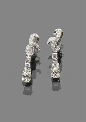 COPPIA DI ORECCHINI Coppia di orecchini in oro bianco in stile con due...