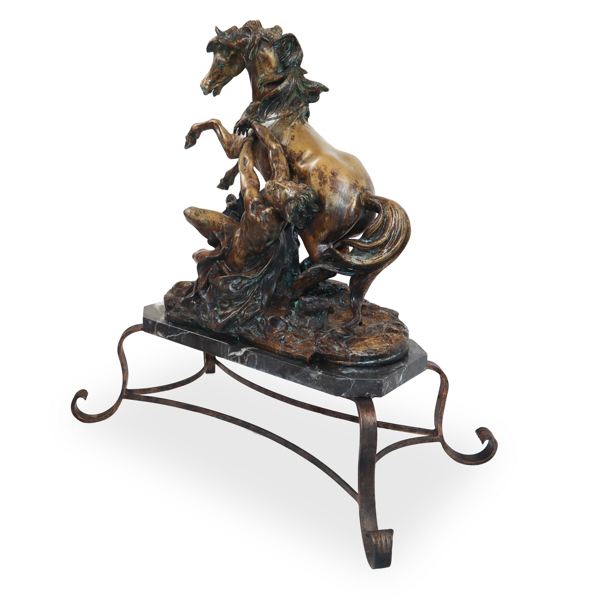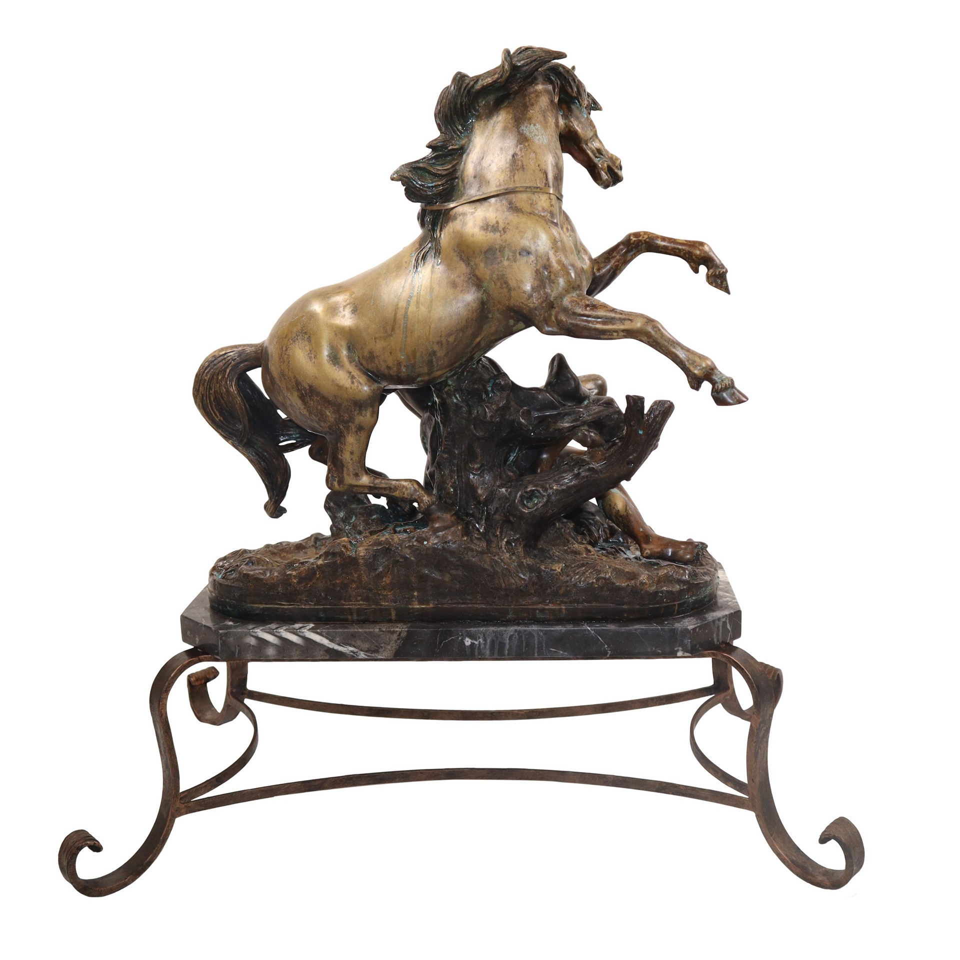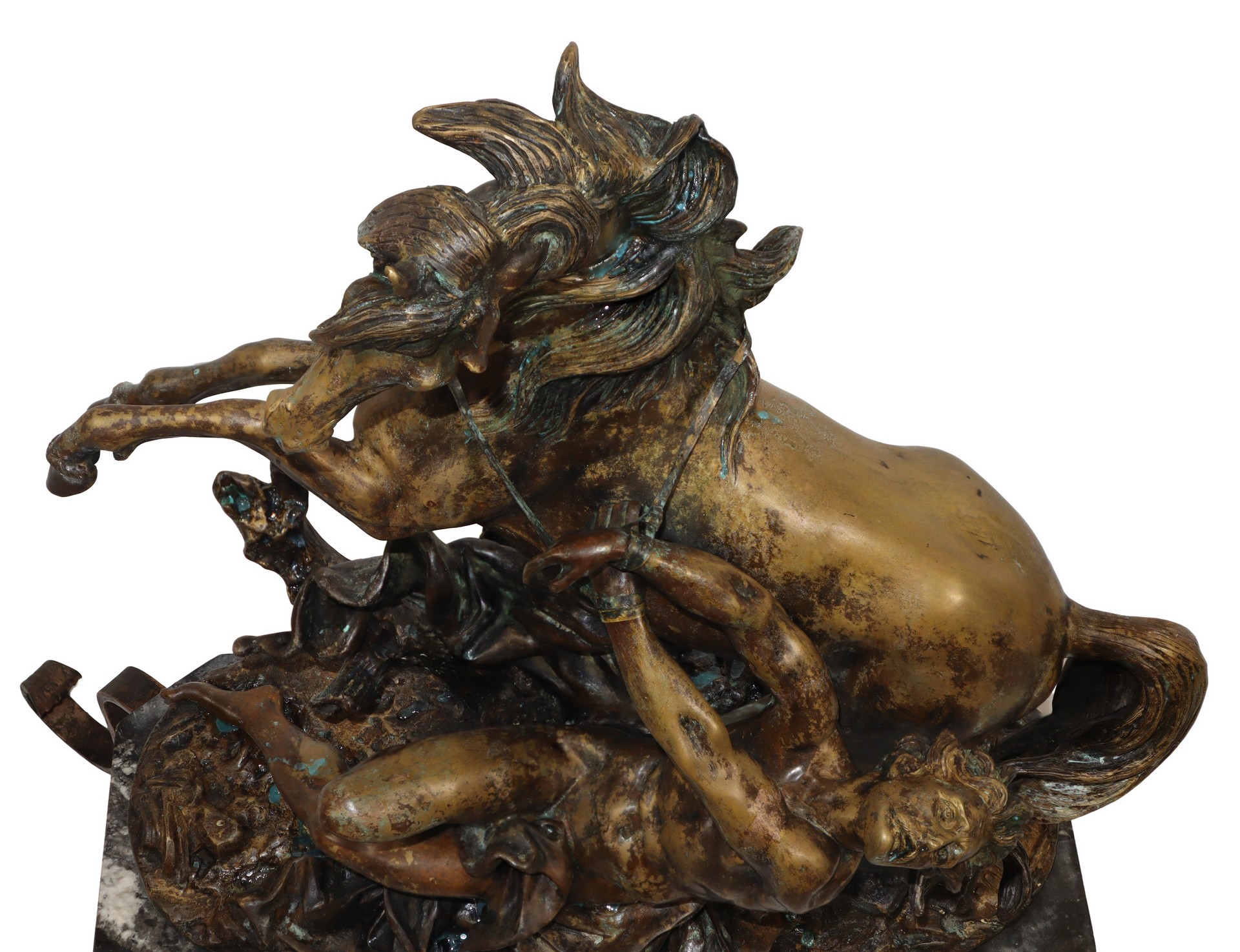 Philippe Poitevin (1831 - 1907) - Cavallo imbizzarrito con domatore h base cm 24 totale h cm 77 X 56 X 22 Bronzo patinato bruno