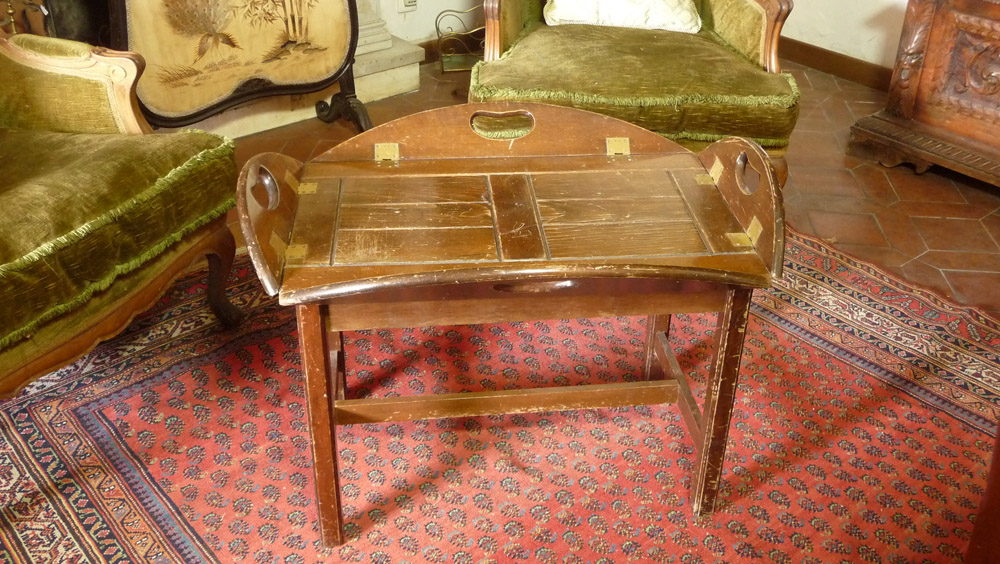 TAVOLINO BASSO DA BARCA IN NOCE piano a vassoio con sponde pieghevoli, gambe...