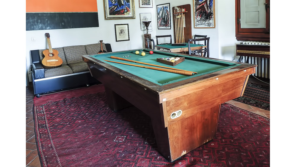 TAVOLO DA BILIARDO IMPIALLACCIATO IN NOCE corredato da stecche e porta...