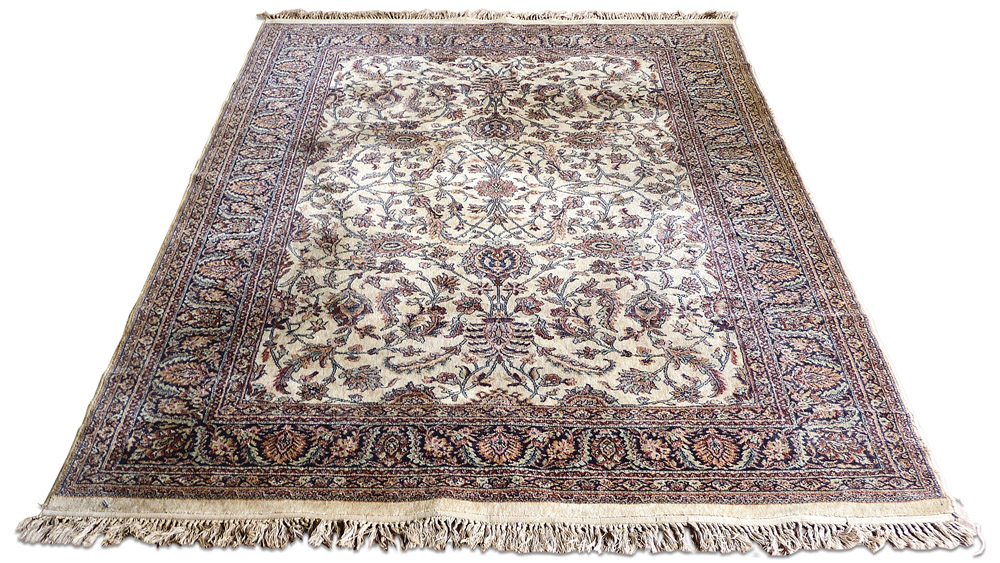 TAPPETO PERSIANO fondo color panna, campo con motivi floreali nei toni del...