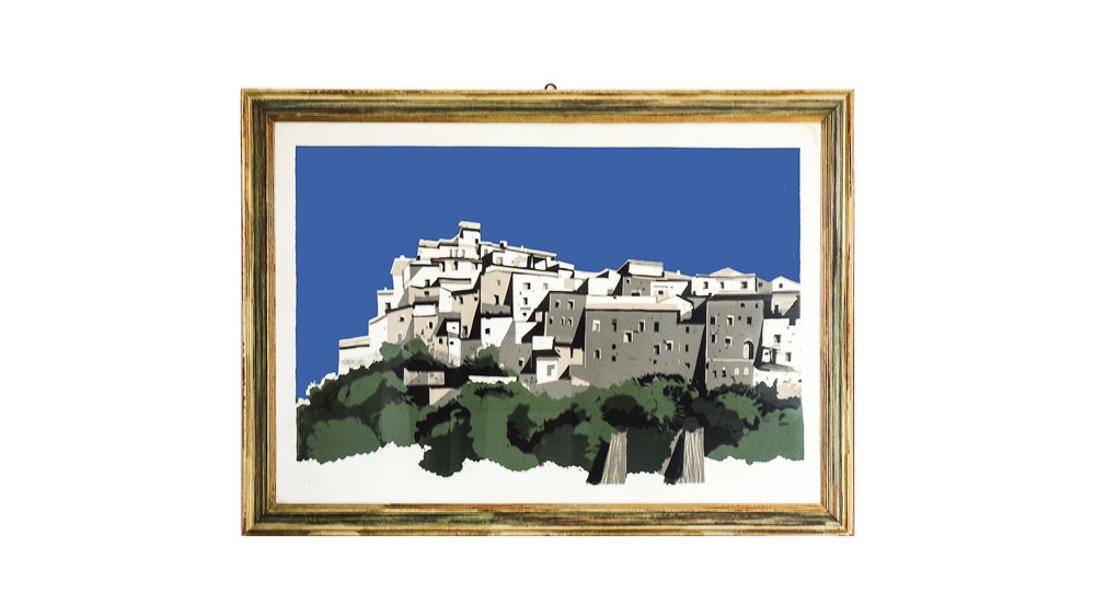 ENOTRIO PUGLIESE (1920-1989) Veduta di paese litografia, es 12/24, firmata, in cornice cm 56x90 TOWN VIEW, LITHOGRAPH