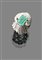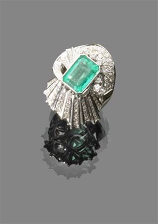 ANELLO Anello in oro bianco con smeraldo di ct 8,00 ca. contornato da diamanti di taglio brillante per complessivi ct 1,50 ca. peso gr 27,20 white gold ring with 8,00 kt emerald surrounded by brillant cut diamonds totaling 1,50 kt weight 27,20 gr