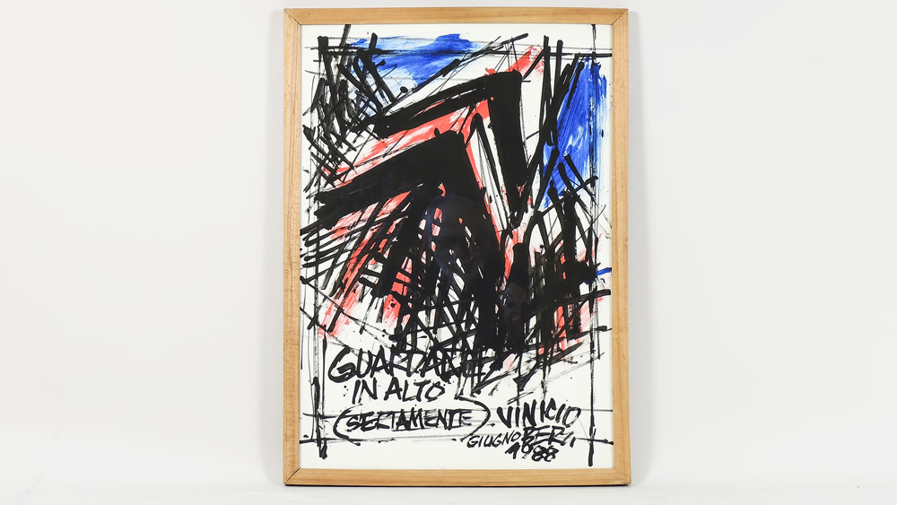 VINICIO BERTI (1921-1991) Guardare in alto (seriamente) 1988 acrilico su cartoncino, firmato e datato, in cornice cm 68x48 COMPOSITION, ACRYLIC ON CARDBOARD