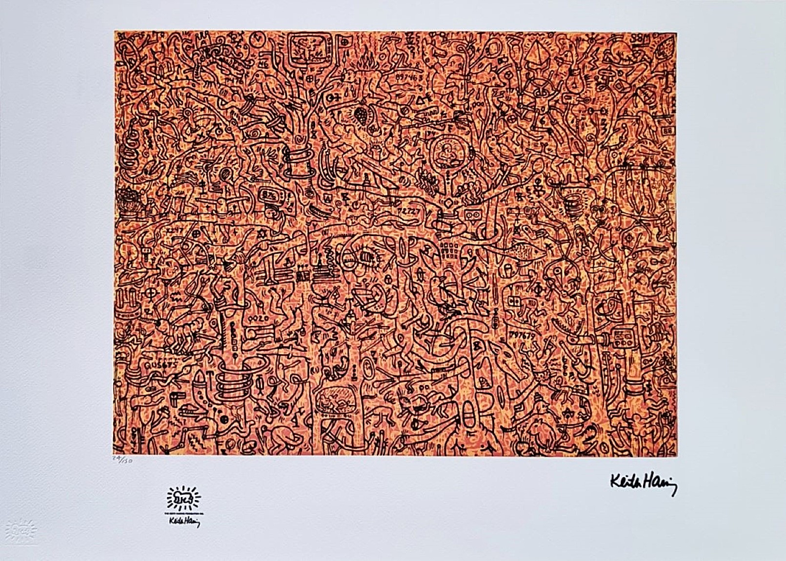 HARING KEITH Pennsylvania 1958 - New York 1990 "Senza titolo" Riproduzione litografica offset cm 70x50. Firma in stampa sul fronte in basso a destra, tiratura 24/150, timbro a secco e timbro in stampa a sinistra.