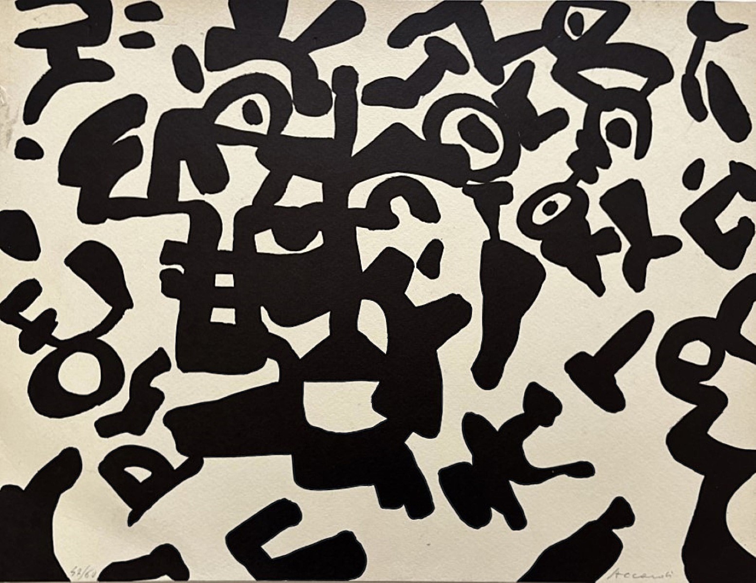 ACCARDI CARLA Trapani 1924 - Roma 2014 "Ohne titel" Litografia in B/N su cartone cm 38x28,7 del 1984. Firmata sul fronte in basso a destra, tiratura 47/60 a sinistra.