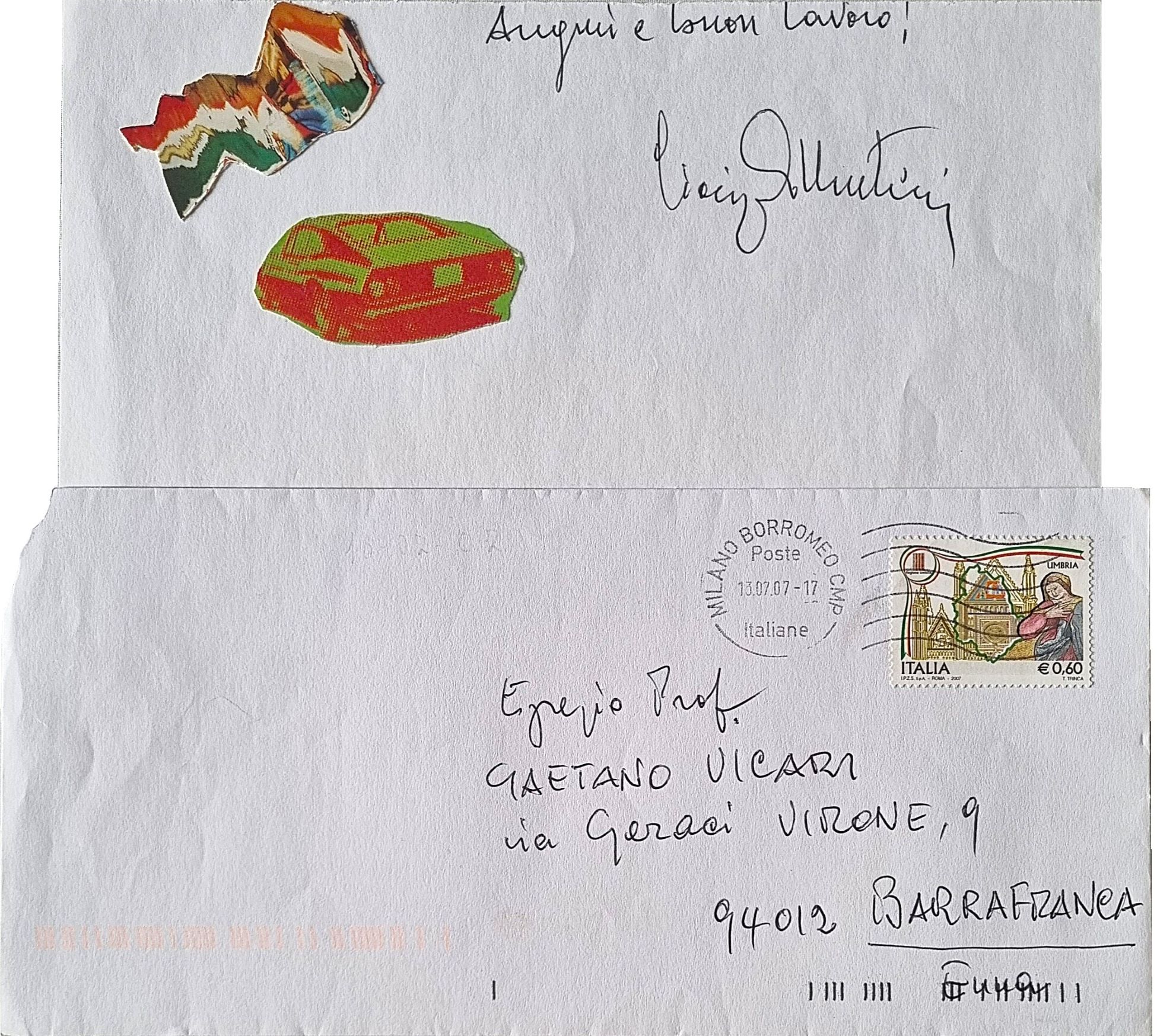 ALBERTINI GIORGIO Milano 1930 - 2020 "Senza titolo" Collage su lettera cm 21x10. Dedicata e firmata. Corredata da busta per lettera originale.