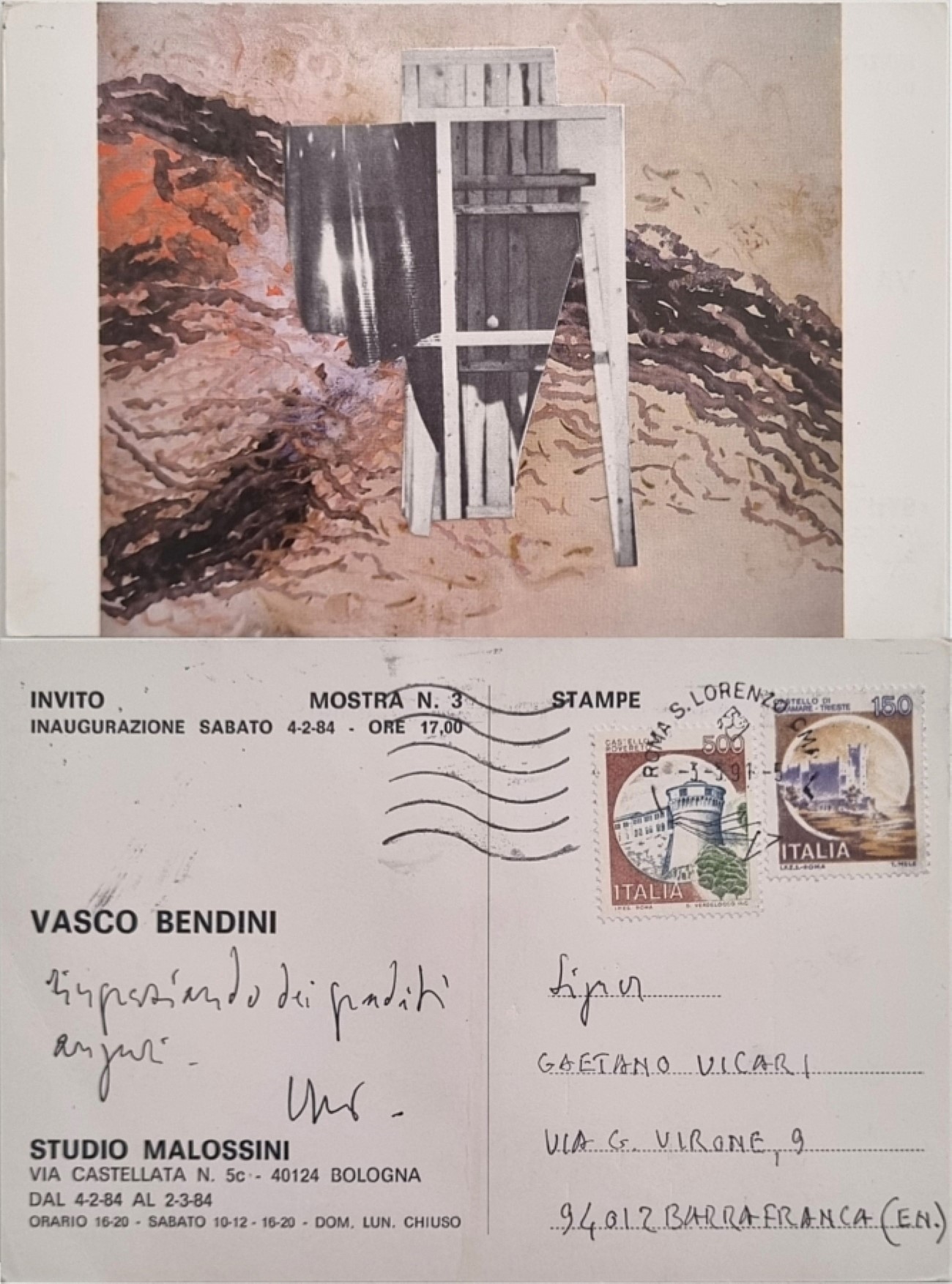 BENDINI VASCO Bologna 1922 - Roma 2015 "Senza titolo" Collage su cartolina cm 10x15. Firmato al verso.