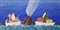 APHEL FABIO Cavalese (TN) 1957 "Due bastimenti carichi di..." Olio su tavola cm 40x20. Firmato sul fronte in basso a destra. Al verso firma, titolo e numero d'archivio.