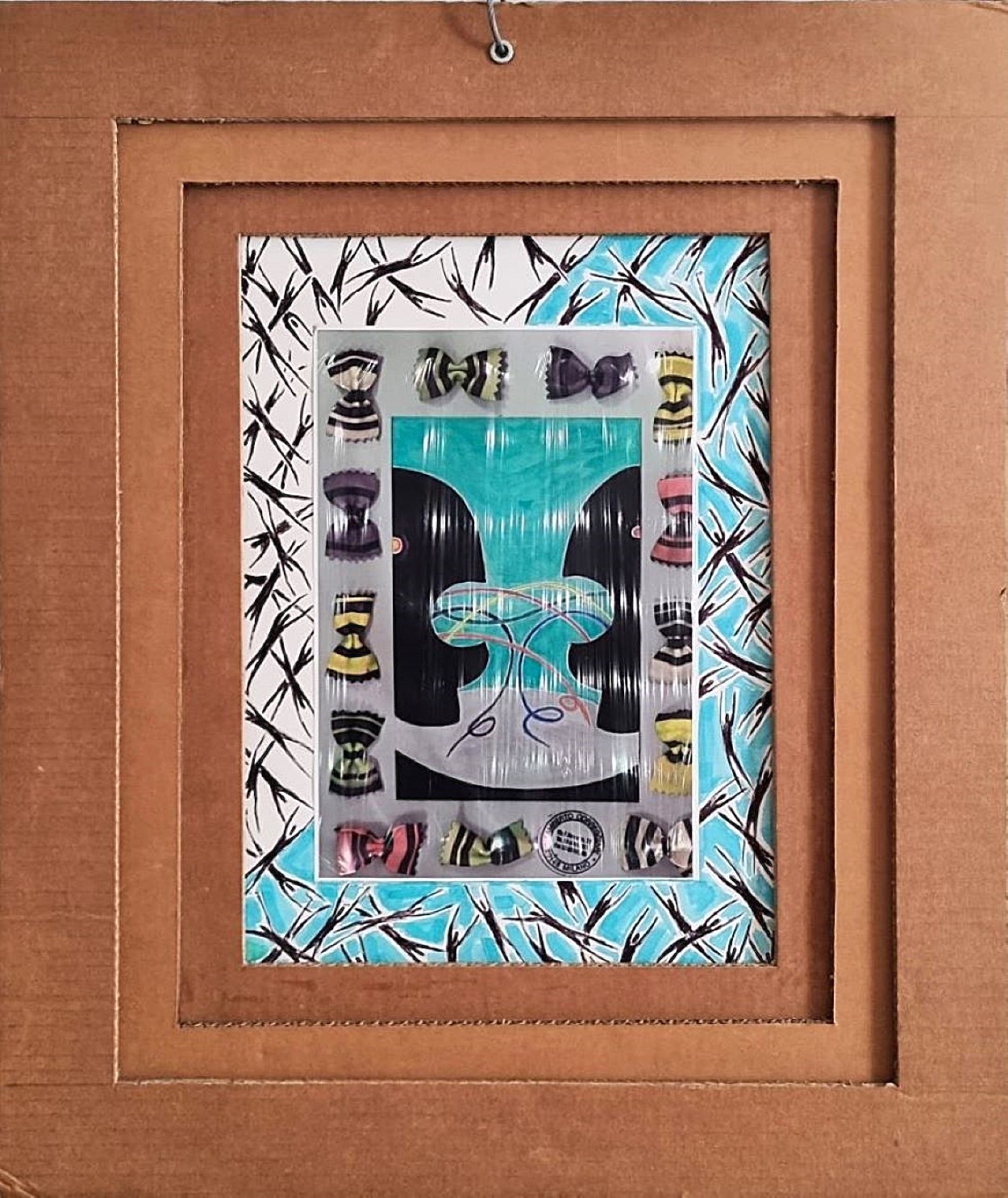 CORREGGIARI LAMBERTO Bologna 1941 "Senza titolo" Disegno e applicazioni su cartone cm 30,5x35, degli anni 2000-10. Il bordo in cartone funge da cornice (peso 500gr), timbro dell'Artista.