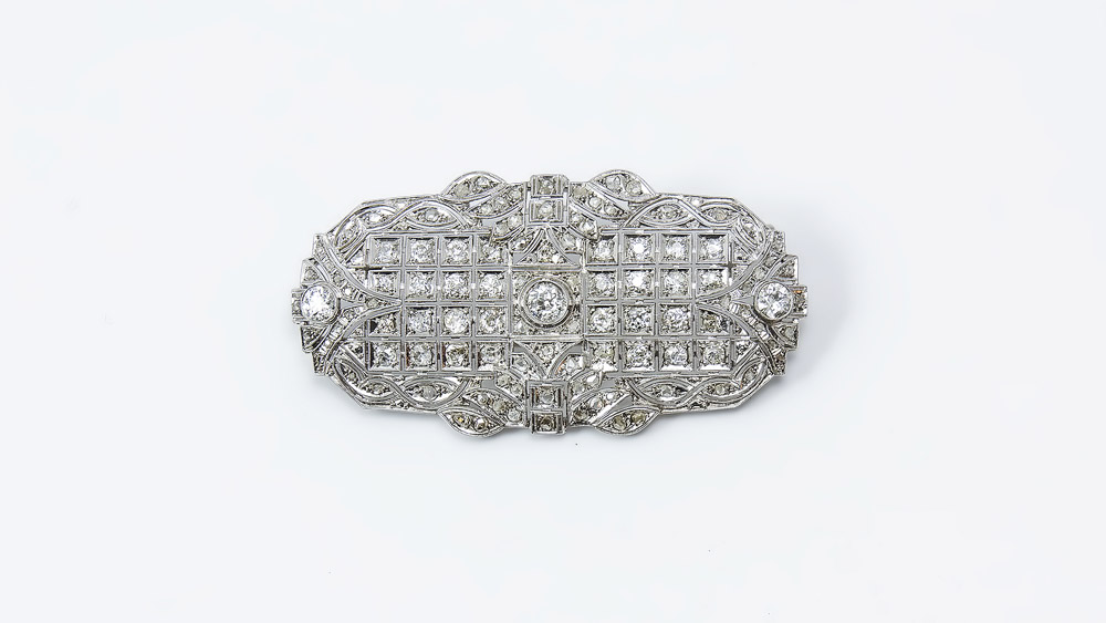 SPILLA/CENTRO COLLANA IN PLATINO E DIAMANTI Anni Venti diamanti taglio...