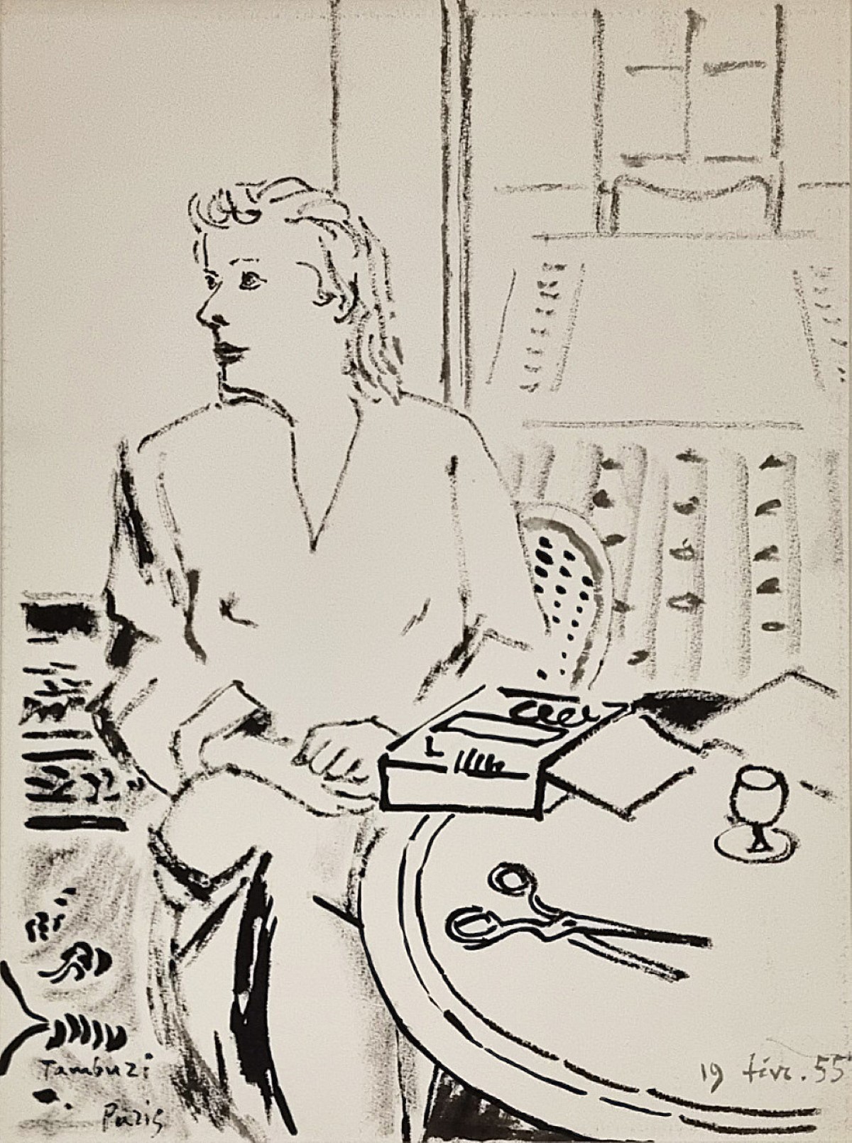 TAMBURI ORFEO Jesi 1910 - Parigi 1994 "Renèe" Tecnica mista su cartoncino cm 24x33 del 1955, corredata di passepartout. Firma e luogo sul fronte in basso a sinistra, data a destra. Autentica su foto a cura del Maestro.