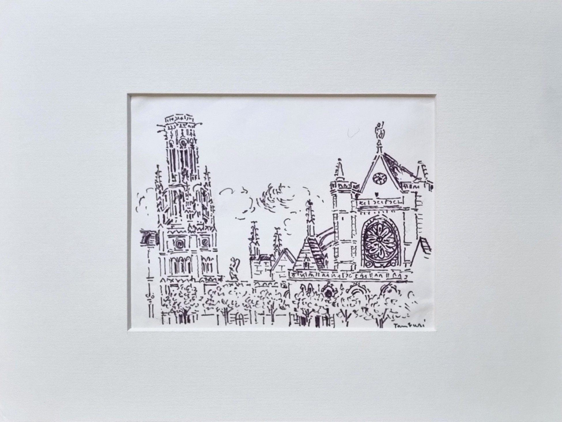 TAMBURI ORFEO Jesi 1910 - Parigi 1994 "St. Germain L'Auxerrois" China su carta cm 21,5x16,5. Firmata sul fronte in basso a destra. Autentica su foto a cura del Maestro. Opera pubblicata sul catalogo "Ciel de Paris" a pag. 4.
