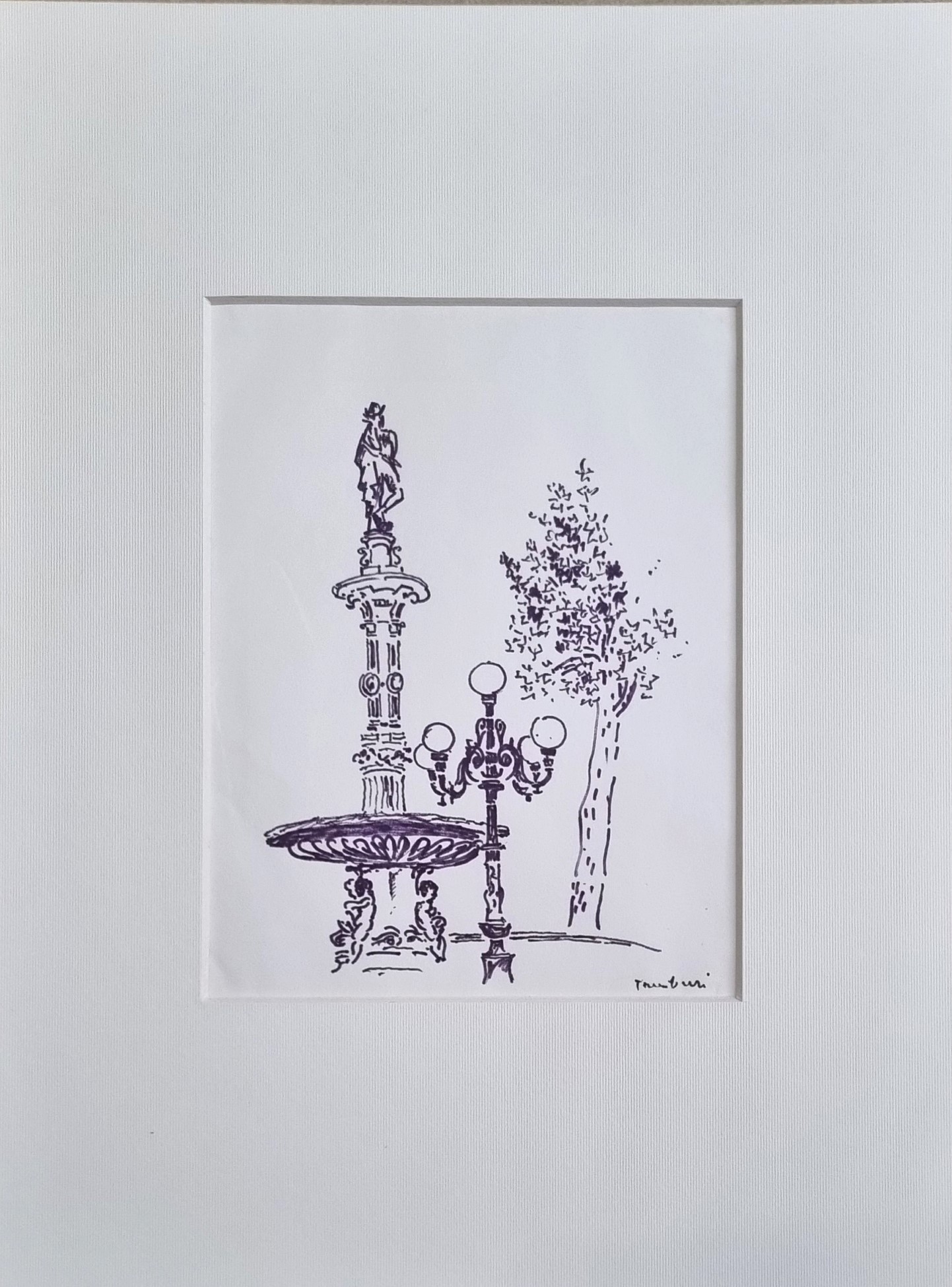 TAMBURI ORFEO Jesi 1910 - Parigi 1994 "Motivi a place de Palais Royal" China su carta cm 17x24. Firmata sul fronte in basso a destra. Autentica su foto a cura del Maestro. Opera pubblicata sul catalogo "Ciel de Paris" a pag. 11.