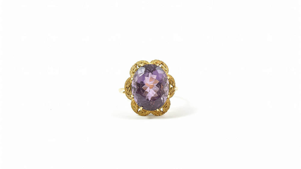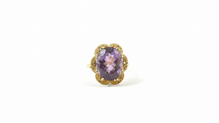 ANELLO IN ORO GIALLO cesellato e satinato con ametista gr 6,3 GOLD AND...