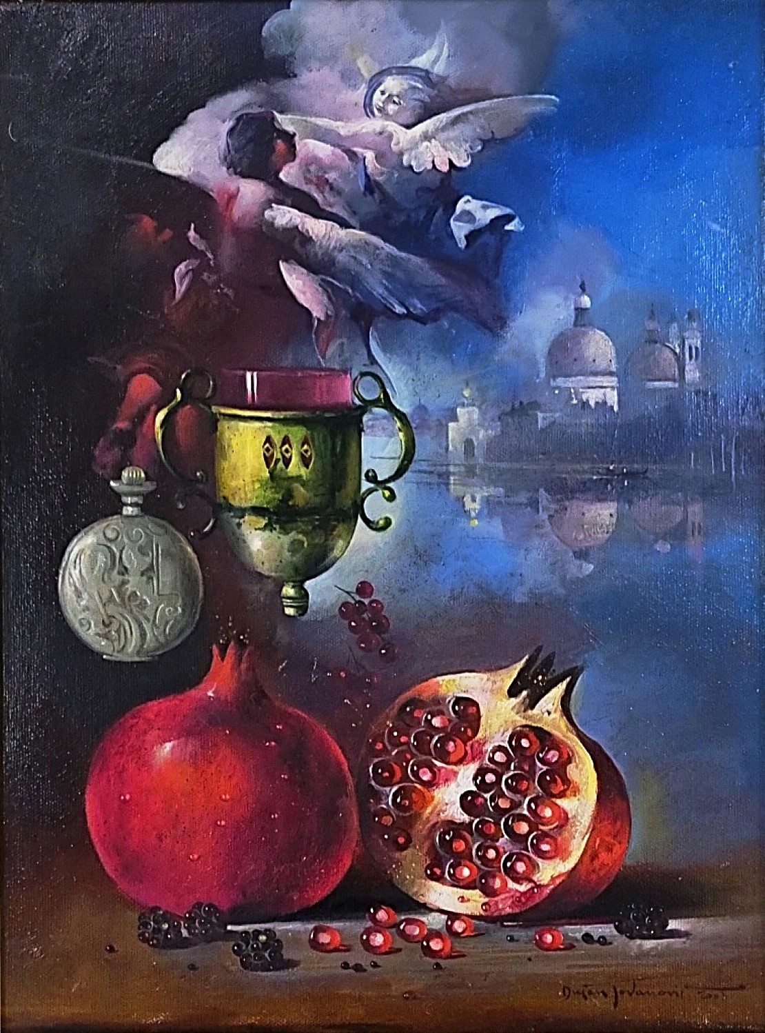 JOVANOVIC DUSAN Belgrado 1949 "Senza titolo" Olio su tela cm 30x40. Firmato e datato sul fronte in basso a destra.