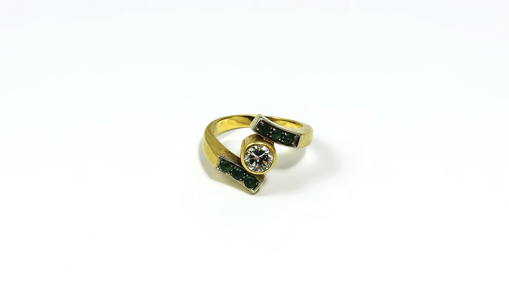 ANELLO IN ORO GIALLO, DIAMANTI E SMERALDI ct 0,50 circa, gr 7,10 GOLD,...
